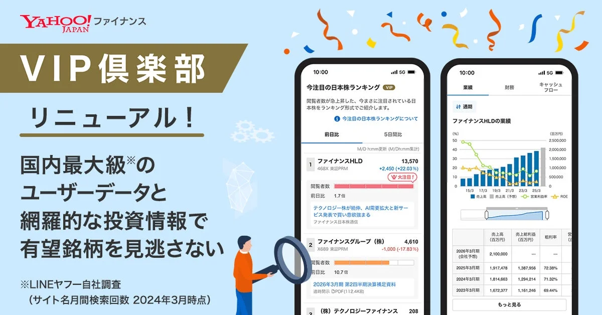 個人投資家の裾野が広がる一方で、銘柄選定の難しさや情報収集の負担は依然として課題となっています。「Yahoo!ファイナンス」は、投資家の関心が高い銘柄や企業業績の変化を直感的に把握できる仕組みを強化することで、投資判断のスピードと精度向上を支援します。新NISA制度の普及に伴い市場参加者が増加する中、初心者から上級者まで、幅広い層のニーズに応える機能拡充が進められています。