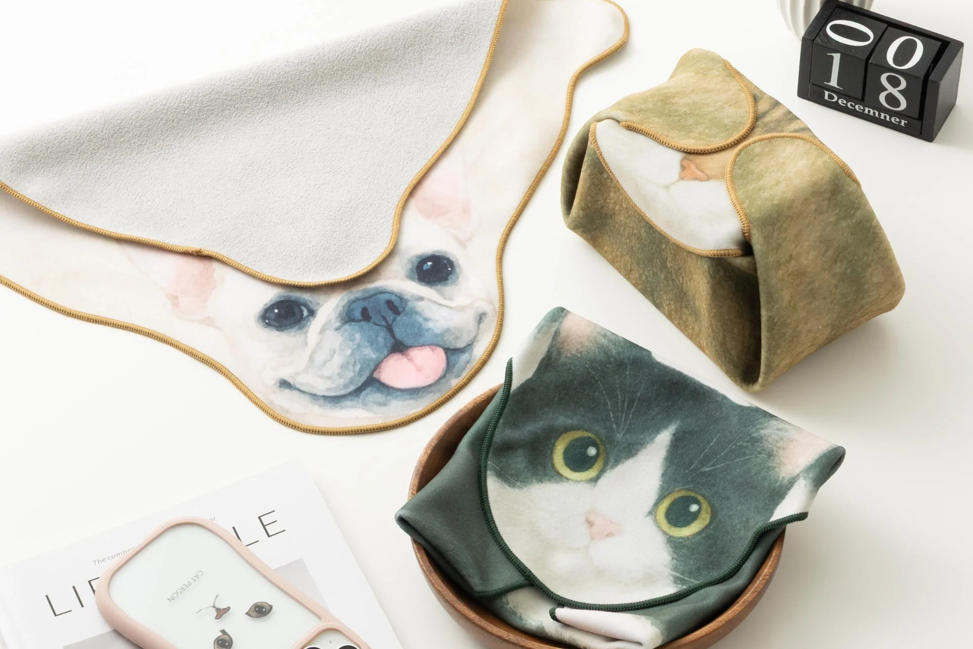 使い方はあなたのアイデア次第で無限大です。お弁当や小物を包むのはもちろん、折り畳み傘やペットボトルを包めば、バッグの中身が濡れるのを防ぐこともできます。大切な荷物を愛らしい犬猫たちが優しく守ってくれますよ。