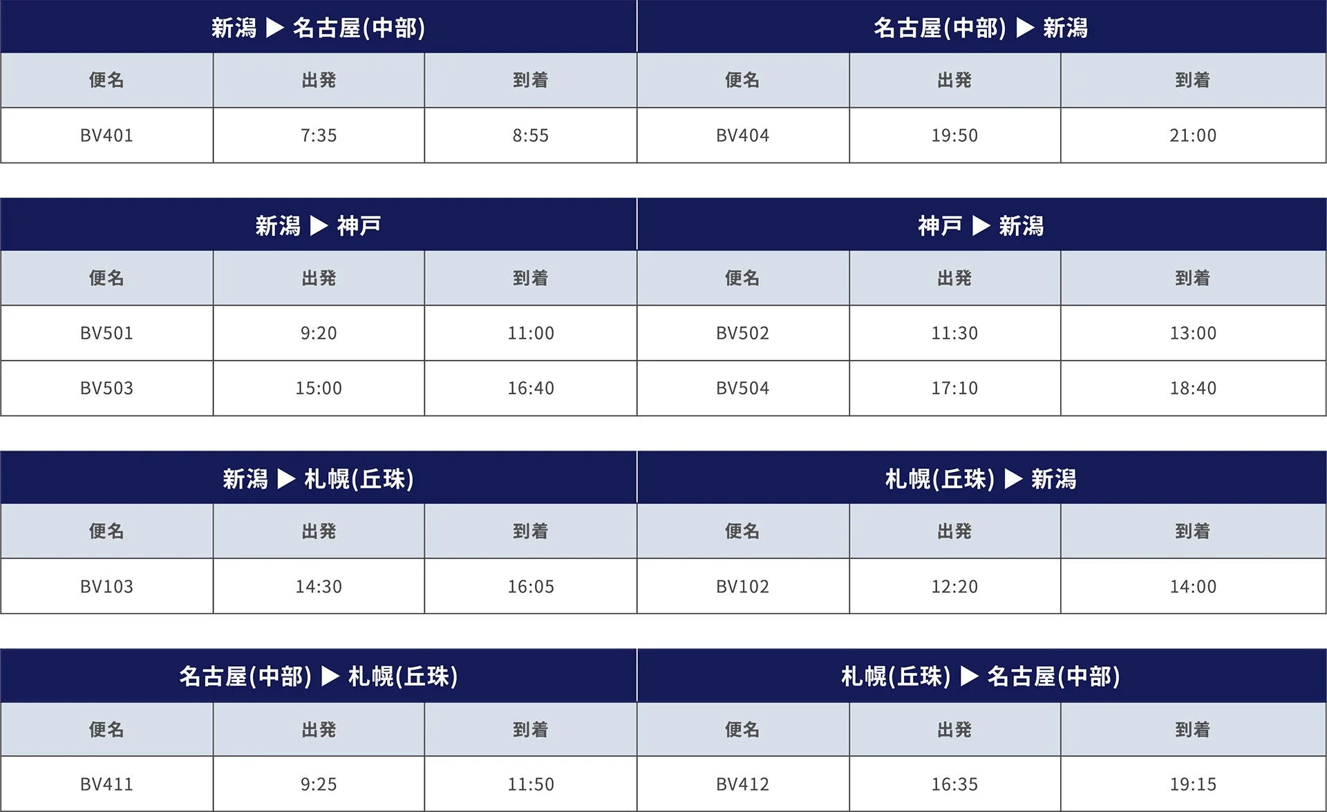 地球環境に配慮し、脱炭素・運航コスト削減に貢献するATR 72-600/ATR42-600などのプロペラ機を使用しています。現在、「新潟=札幌(丘珠)」「新潟=名古屋(中部)」「新潟=神戸」「名古屋(中部)=札幌(丘珠)」線を運航しており、ビジネス、観光、インバウンドなど地域創生に貢献しています。