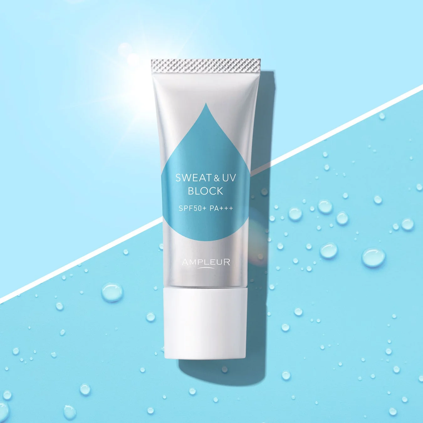 近年、通勤・通学時の汗ばみや外出時の暑さ、緊張による発汗、さらには更年期によるホットフラッシュなど、顔汗によるメイク崩れに悩む声が増加しています。このような背景を受け、アンプルールは汗そのものにアプローチする新発想のUVベースを開発しました。