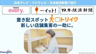 株式会社Every WiLLが提供する国内初の「ポイントがもらえる置き配拠点」『トリイク』が、日本テレビ、フジテレビ、日本経済新聞で相次いで特集されました。このサービスは、国の物流政策と合致し、店舗への集客と物流課題の解決に貢献します。
