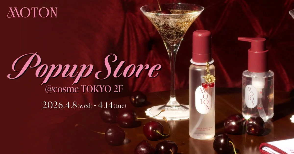 イベントでは、「CHERRY PIE」の甘酸っぱい香りが広がる「Cherry Cinema」が登場。扉を開けた瞬間に、みずみずしいチェリーと焼きたてパイのやさしく甘い香りがあなたを包み込みます。懐かしくも新しい、特別な香りの体験をMOTONが提供します。