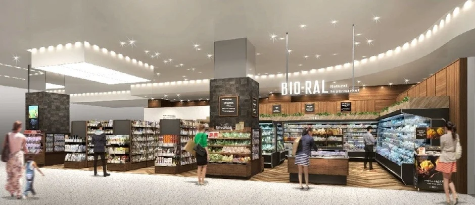1日約65万人が利用するターミナル駅に直結するこの店舗では、ランチやお仕事帰りに健康に配慮した食事が豊富に用意されます。原料の一部に有機素材やプライベートブランド「BIO-RAL」の商品を使用した惣菜が充実する予定です。