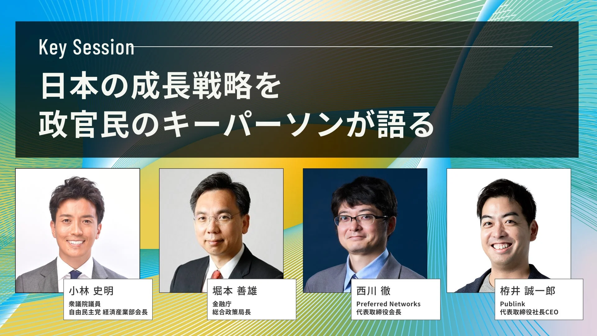 不確実性の高まる現代において、政府の成長戦略の核心、金融行政の中枢を担う幹部、そして日本を代表するAIユニコーン企業の創業者が、産業の担い手である民間とともにどのような未来を構想し実装していくのかを議論します。政策立案と経営の意思決定に直結する視座と具体的なヒントを得られるセッションです。