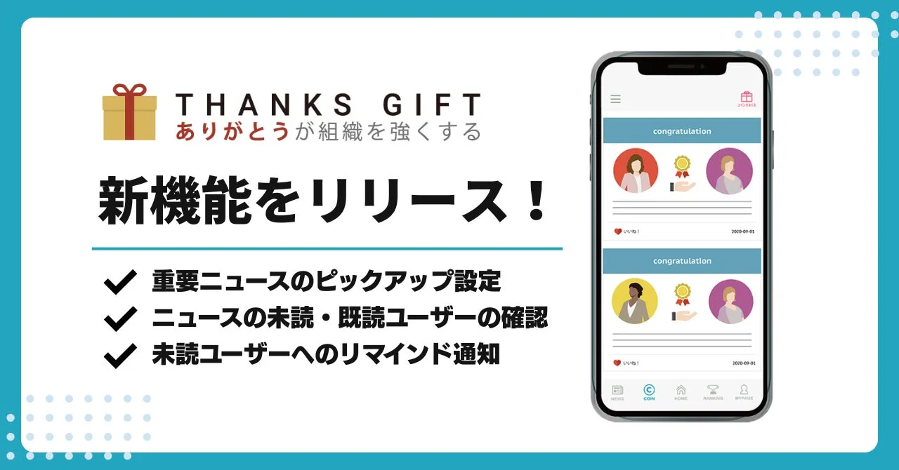 多くの企業で「THANKS GIFT」が活用される中で、「より確実に、重要な告知を浸透させていきたい」という高度な運用ニーズが寄せられました。これを受け、単に「目立たせる」だけでなく、未読者への「リマインド」までを一気通貫で行えるよう、今回の機能アップデートが実施されました。