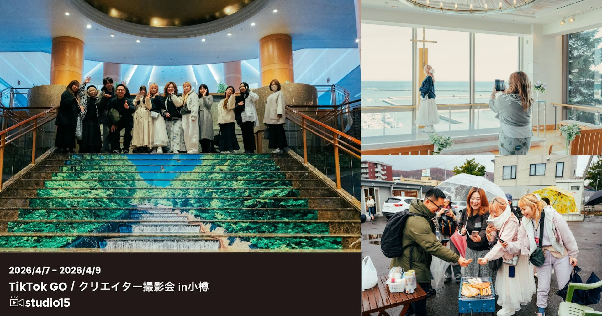 2026年4月7日から9日の3日間、studio15とともに小樽ふれあい観光大使でありstudio15の顧問でもある山下智博氏の監修のもと、旅行情報に特化したクリエイター10名が市内7つの宿泊施設に誘致され、撮影会が実施されました。