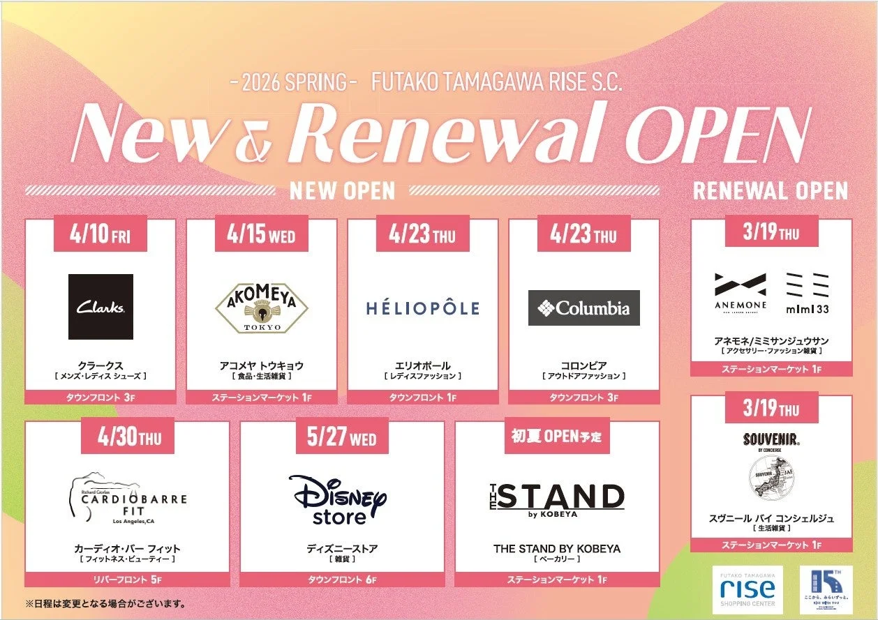 2026年4月24日、開業15周年を迎えた二子玉川ライズ・ショッピングセンター(以下、二子玉川ライズ S.C.)は、2026年春に新店舗のオープンおよび既存店の店舗リニューアルを実施することを発表しました。