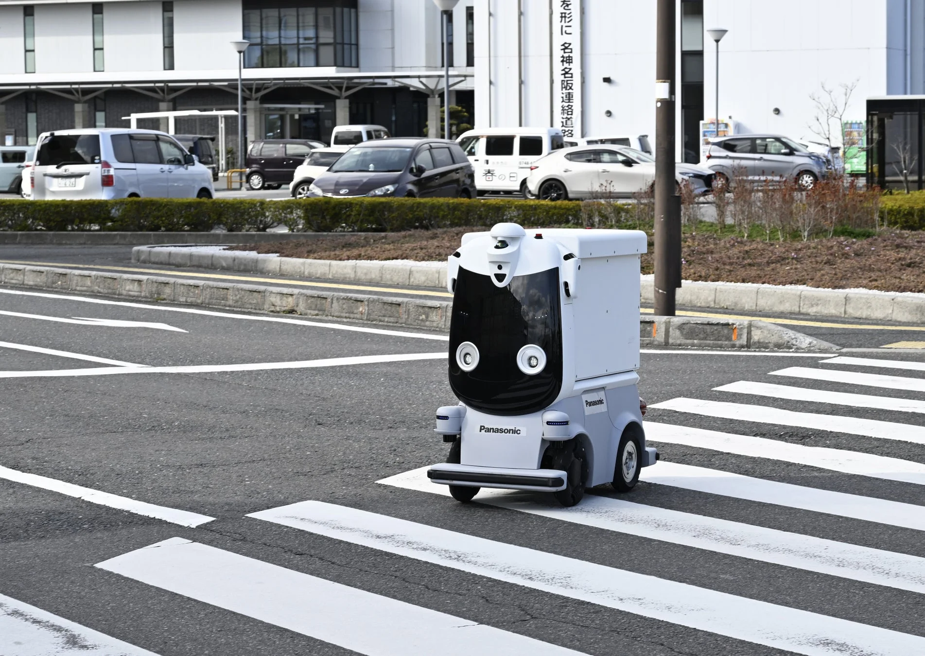 自動配送ロボットが横断歩道を渡る様子