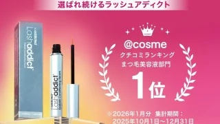 BJC株式会社の大人気まつ毛美容液『ラッシュアディクト アイラッシュ コンディショニング セラム アドバンス』が、コスメ・美容の総合サイト@cosmeのクチコミランキングまつ毛美容液部門で2026年1月度1位を獲得しました。累計販売本数554万本を突破し、多くのユーザーから支持され続けているこの商品の魅力に迫ります。