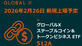 Global X Japan株式会社は、東京証券取引所から「グローバルX ステーブルコイン&トークンビジネス ETF(除く日本)」(銘柄コード:512A)の上場承認を受けたと発表しました。上場予定日は2026年2月26日(木)です。このETFは、日本を除く世界のステーブルコイン関連およびトークンビジネスに携わる上場企業に投資します。